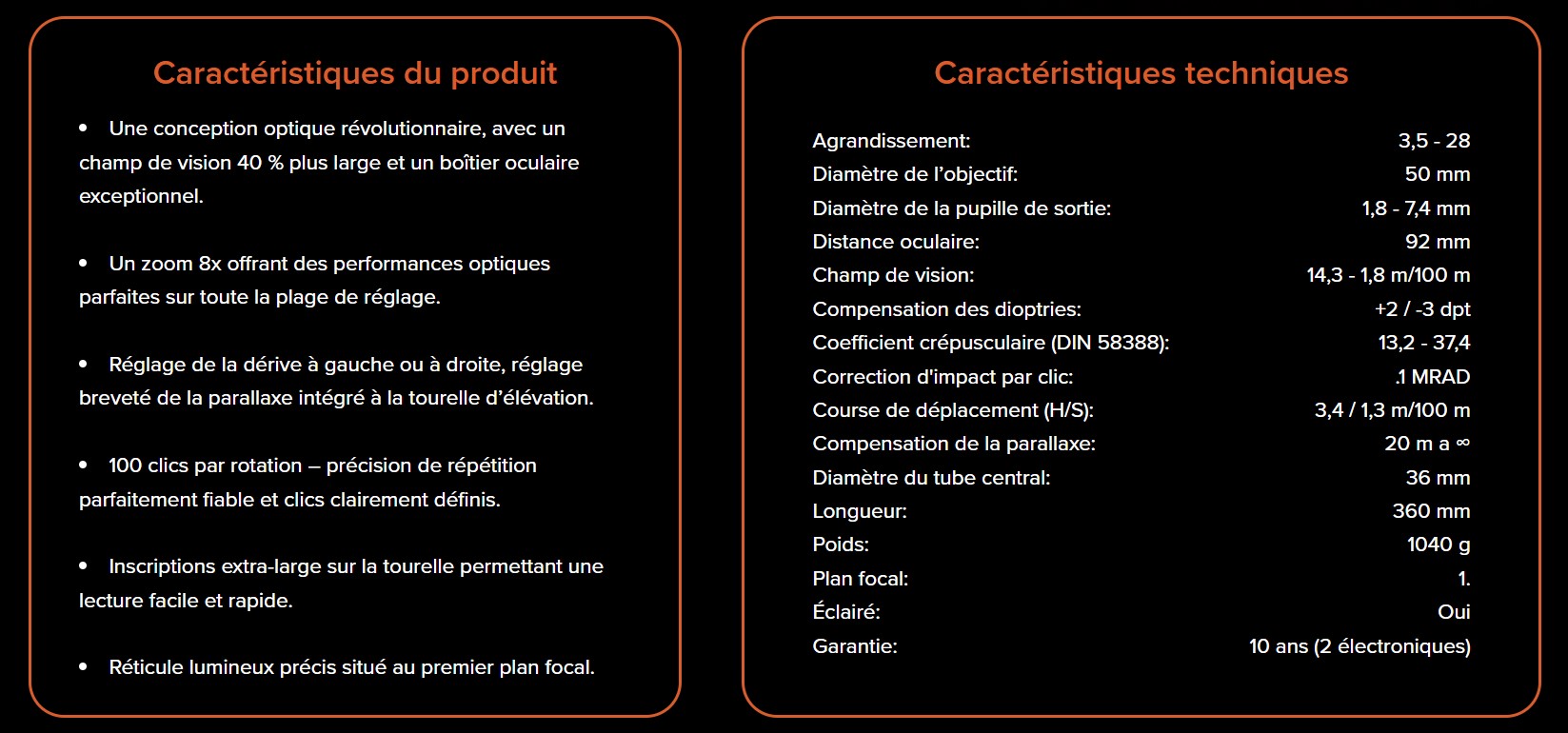 • Réticule lumineux précis situé au premier plan focal.